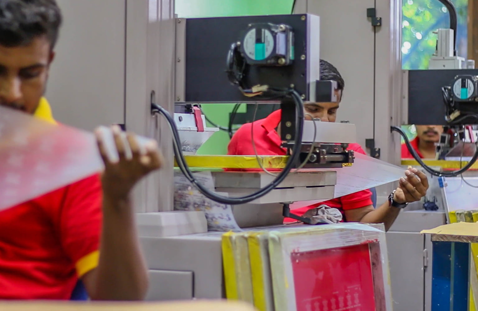 A printing technique that uses a mesh with an ink-blocking stencil to transfer ink to an object such as paper etc. A blade is moved across the screen stencil to pass the ink through the mesh to the item that will receive the image. The screen bounces back away from the item and the ink remains to print a sharp image. At JPL Lank we have mastered the cutting-edge techniques of screen printing to give out high-quality outputs to our customers.